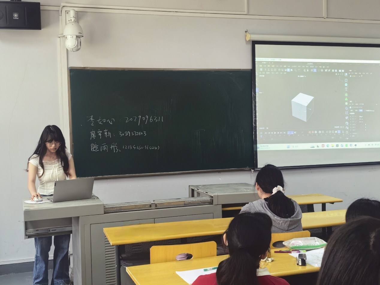 而黄亚宁同学则围绕 C4d 建模展开教学。她从 C4d 软件的基础界面介绍入手,逐步深入到三维模型的创建、材质赋予、灯光布置及渲染输出等内容。通过现场演示,她展示了如何使用 C4d 强大的建模工具构建复杂科研模型,并通过材质渲染让模型更具真实感和视觉冲击力。同时,针对科研场景中常见的模型动画制作,黄亚宁也进行了简要讲解,让同学们领略到 C4d 在科研成果动态展示方面的独特优势。