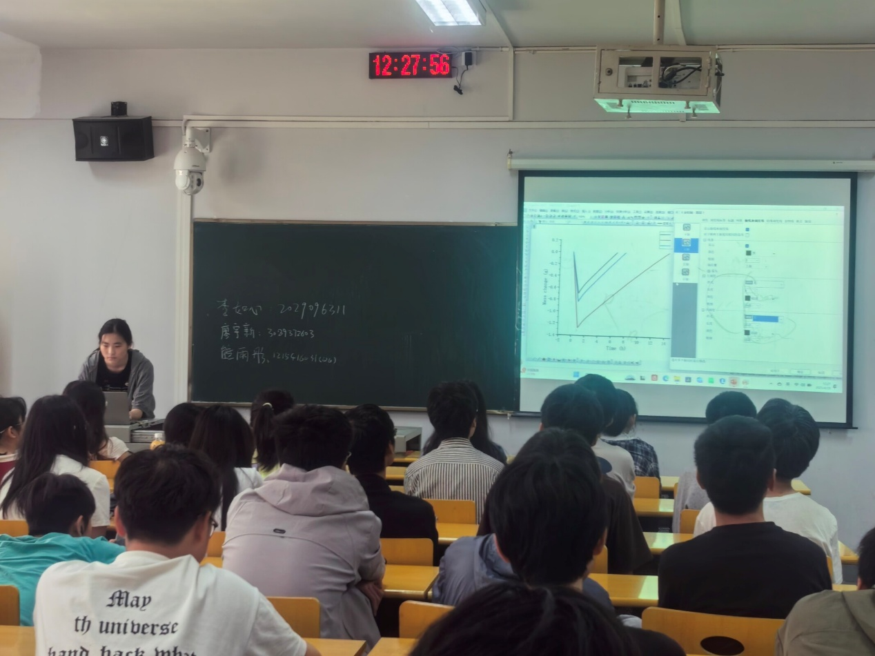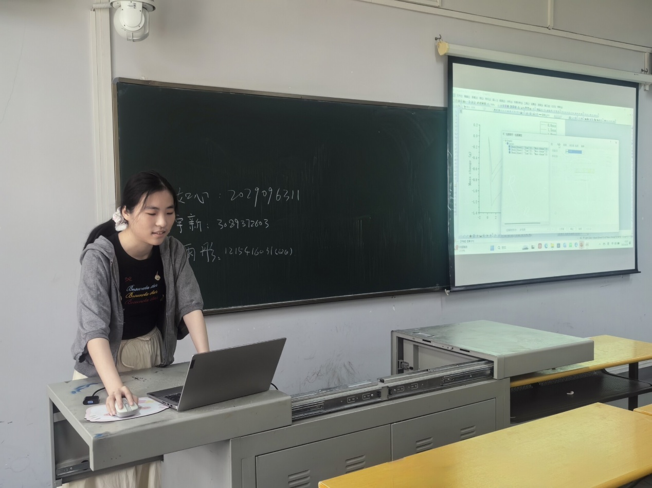 活动伊始,龚怡函同学结合自身科研经验,从科研作图在学术研究中的重要性切入,强调专业作图工具对科研工作的积极意义,迅速抓住在场同学的注意力。在 Origin 科研作图教学环节,她以数据处理为基础,系统讲解了数据导入、图表类型选择、坐标轴设置、图形美化等核心操作。针对科研论文中常见的折线图、柱状图、散点图等,龚怡函通过实际案例演示,分享了如何运用 Origin 突出数据重点、优化图表细节,使图表兼具科学性与美观性。