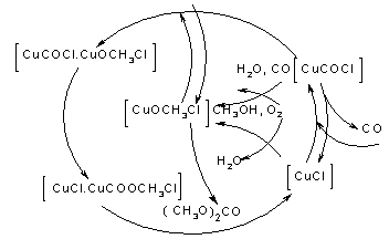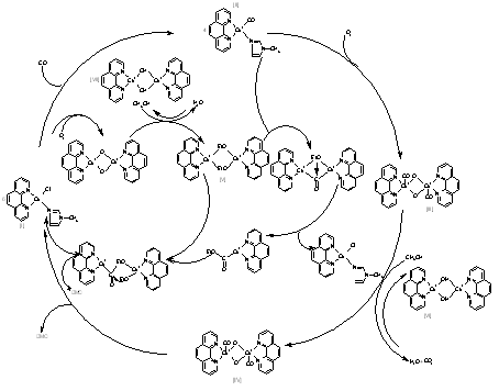 关于氧化羰化法制备DMC的反应机理的研究,主要集中在液相法以一价铜盐为主的催化体系中。