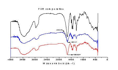 从红外光谱图中我们可以发现聚乙烯吡咯烷酮与CuCl络合物的羰基发生了偏移,从1659.94 减小到1655.06
