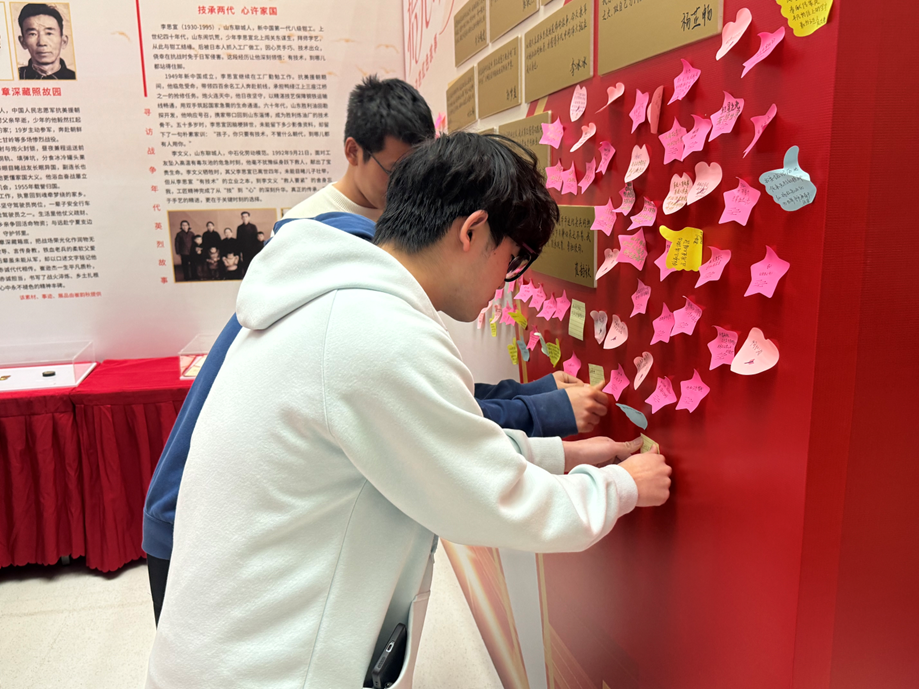 在留言墙前,同学们纷纷拿起笔,写下自己的参观心得。一句句真挚的话语,以笔为媒,承载着同学们对英烈的缅怀与对未来的期许。最后,大家依次在签名簿上郑重签下自己的名字,以这种方式作出承诺,表达传承红色精神、砥砺奋进的决心。