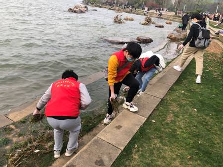 2021年3月20日,三亿体育院团委指导老师陈正超带领员工会志愿者们“学党史守初心,做雷锋担使命”,前往武汉市东湖清理岸边垃圾,践行习近平总书记“绿水青山就是金山银山”的绿色环保发展理念。