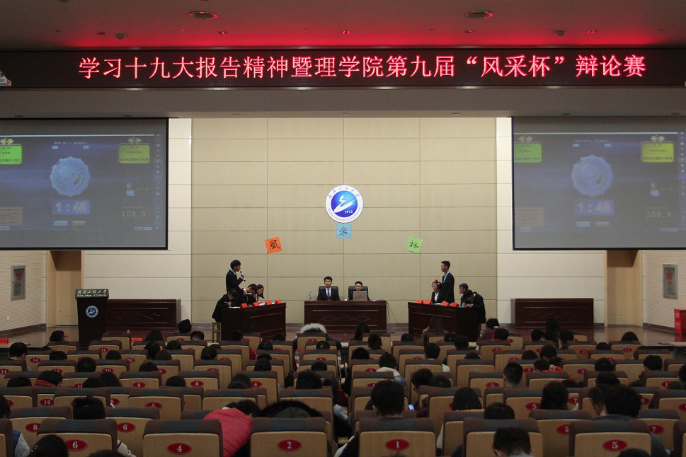 为丰富老员工的课余活动,培养同学们的思辩能力和语言表达能力,理学院于2017年11月27号在四教报告厅举行第九届“风采杯”辩论赛决赛。到场嘉宾有理公司党委副书记曾颖老师、校辩论队队长韩啸东学长、校学术部部长黄家豪学长、校辩论队指导老师朱艺学姐、校辩论队指导教练陈明丽学姐、理学院前任辩论队队长崔萌学姐、理学院团学联主席团全体成员以及各学院主席。