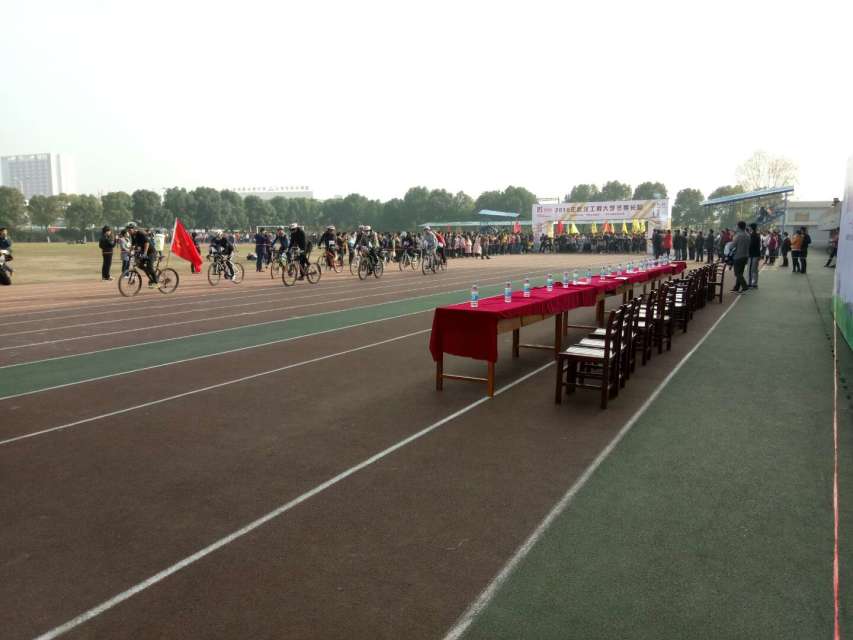 长跑活动在下午2点准时开始,跑道上的同学们都努力的奔跑着,各院的领跑者举着本院的院旗,引领着同学们冲刺,给予同学们鼓励和信心。一面面鲜艳的院旗在风中飞舞,奔跑涌动的同学们仿佛形成一条巨龙,环璇盘绕在校园内。寒冷的天气丝毫没有影响同学们的跑步热情,跑道旁的啦啦队和现场维护秩序的志愿者都无一不为同学们呐喊加油。理学院的志愿者们在终点馋扶着参赛同学们,为他们倒水,帮助他们放松,也忙的不亦乐乎。