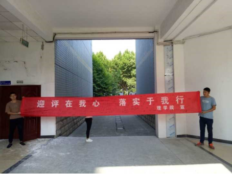 动员会后,三个年级的同学在“迎评在我心,落实于我行”横幅上签名,承诺迎评决心。