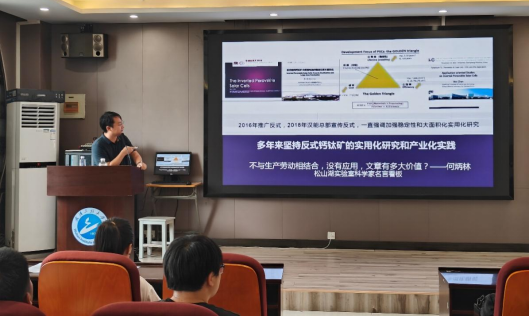 2024年9月11日下午,华中科技大学陈炜教授在学院2号实验楼401报告厅作“反式钙钛矿太阳能电池产业化”报告。他从效率、稳定性和成本“三要素”切入,剖析钙钛矿电池材料与器件结构演进,解读反式结构选择缘由,探讨成本对产业化影响,同时介绍武汉相关技术路线、现状及未来方向。陈教授强调学术与应用结合的重要性,鼓励研究生注重成果转化,其讲解引发师生对科研产业关系的思考,为研究生学业和职业发展提供了详实有效的指导。