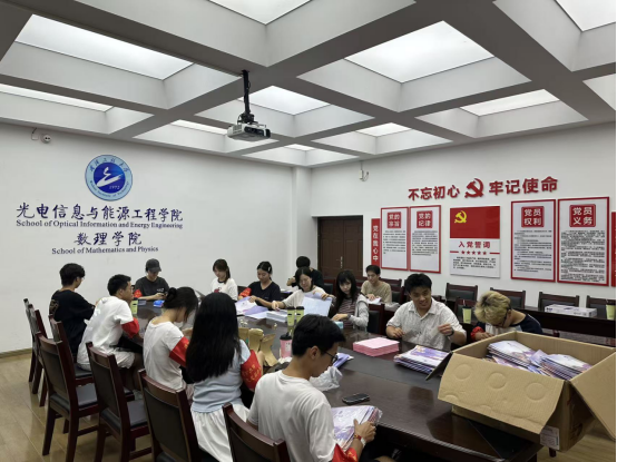 早在新生报到前,党员志愿者们就已投入紧张的准备工作。他们齐聚一堂,细心分装独具特色的“迎新大礼包”。大礼包内不仅装有新生入学指南、校园地图等实用物品,更饱含着学院的真诚祝福与欢迎。