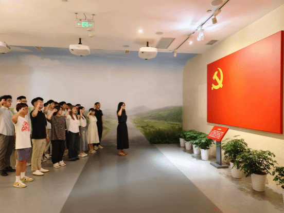 在陈列馆一楼鲜艳的党旗前,光信第一员工党支部书记胡倩文带领全体党员重温入党誓词,右拳紧握郑重宣誓,声声入耳振奋人心,表达了不忘初心、牢记使命、奋发有为的信念和决心。