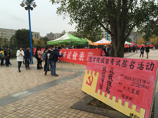 从12月1日起,理学院召开了创先争优之党员诚信考试动员大会,举行了“创先争优之诚信考试签名”等活动。此活动旨在更加规范组织员工党员,让党员提高自我管理的能力,强化党员意识,并通过诚信考试传递正能量,积极引导同学们诚信考试。倡议全院乃至全校员工诚信应考,营造良好学风。