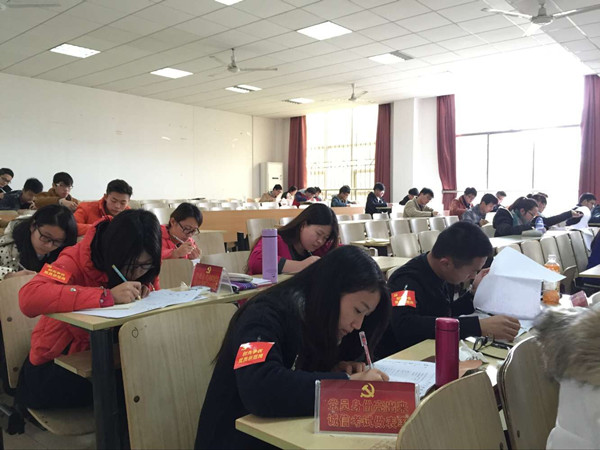 在12月份的期末考试中,理学院的考场里所有的员工党员都以戴党徽、贴袖标、放坐签的形式,亮出党员身份,做诚信考试表率。
