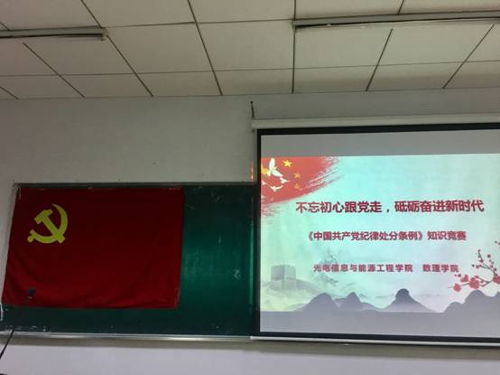 在知识竞赛开展前,各支部通过集中学习和自学相结合,以主题党日活动等形式开展了相关学习。学院将活动的严肃性、组织性和趣味性有机结合,开展了“不忘初心跟党走、砥砺奋进新时代”主题知识竞赛。竞赛以《中国共产党纪律处分条例》为主要内容,涵盖了党的十九大报告、《中国共产党章程》、党的基本理论和最新理论成果。竞赛中党员同志们对党的知识有了更深层次的认识,也再次增强了坚决维护习近平总书记党中央的核心、全党的核心地位,牢固树立政治意识、大局意识、核心意识、看齐意识,做一个遵纪守法的新时代青年。