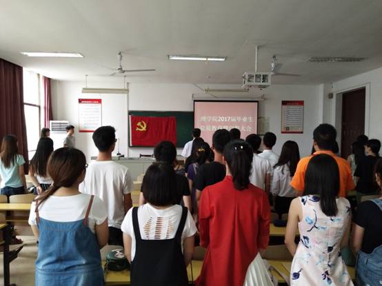 (通讯员:曾峥)6月14日下午,理学院在三亿体育app流芳校区一教301教室召开了2017届毕业生党员教育暨宣誓大会。大会在嘹亮的国歌声中拉开序幕。