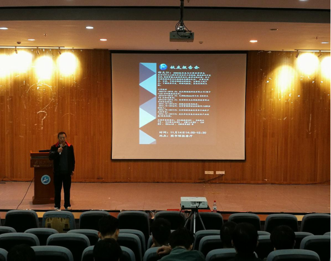 2017年11月14日14时,人文素质讲座-员工报告会在图书馆二楼报告厅举行,本次报告会的主讲人是2003级信息与计算科学专业员工祁大江,理学院副经理戴祖旭出席并主持报告会。2015级与2016级信息与计算科学同学参加了本次报告会。