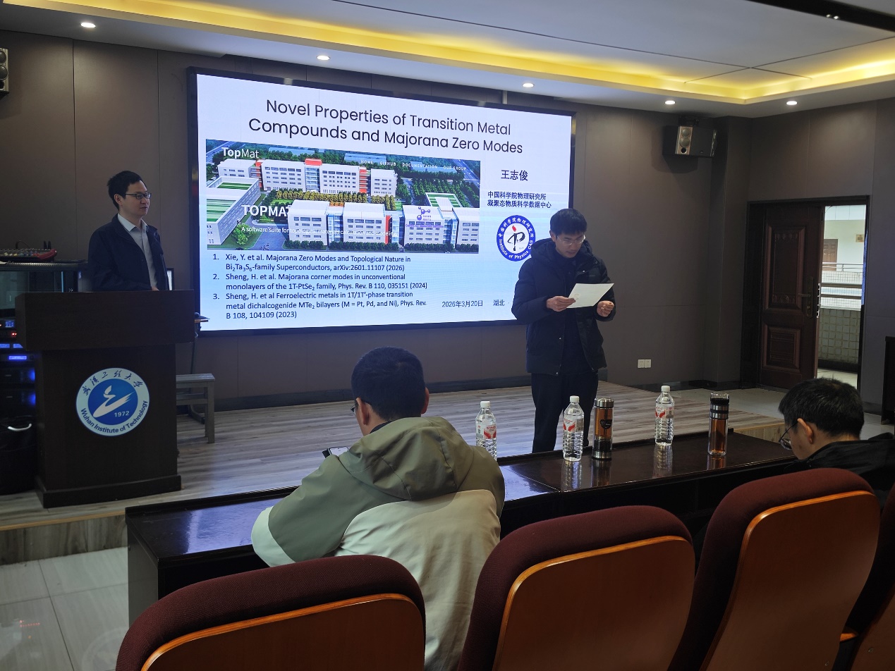 本网讯(通讯员 周曼曼) 2026年3月20日上午,中国科学院物理研究所研究员、博士生导师王志俊老师应邀来校担任研究生创新学术论坛主讲嘉宾,为师生带来了一场关于拓扑物态理论的精彩学术报告。