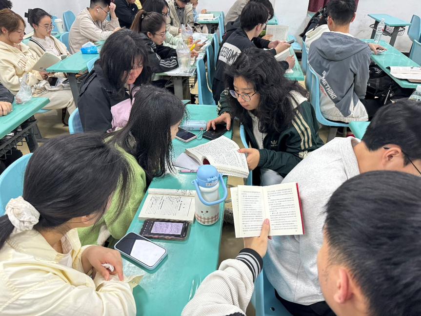 活动现场以小组共读的形式有序开展。各学习小组分别选取《毛泽东选集》《红星照耀中国》《红岩》等红色经典书籍开展集体研读。学员们结合著作创作背景与历史脉络,细致品读经典章节,重温革命奋斗征程,深刻感悟革命先辈坚守理想、攻坚克难、无私奉献的崇高精神,在文字研读中接受红色文化熏陶,在历史回望中汲取奋进力量。