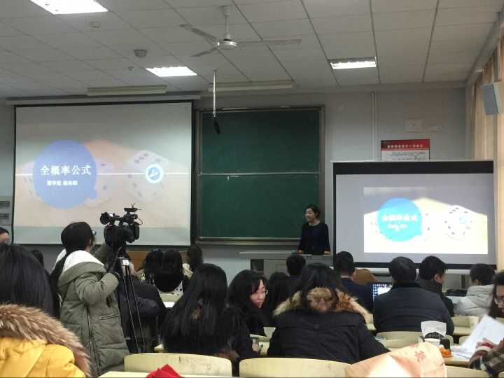 “台上一分钟,台下十年功”。杨向辉老师在竞赛中为评委和观摩师生讲授了“全概率公式”这一章节。她从抽中郭德纲相声会门票的概率事件入手,贴切的案例,生动的语言,严密的逻辑,将枯燥无味的数学概率知识讲解得栩栩如生,浅显易懂。从仪态、教案、PPT、表达、互动等多环节都赢得了评委和在场师生的好评。