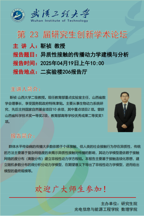 【二十三届研究生创新学术论坛】异质性接触的传播动力学建模与分析———靳祯