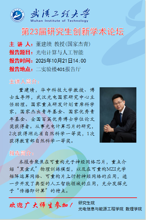 【研究生创新学术论坛】光电计算与人工智能