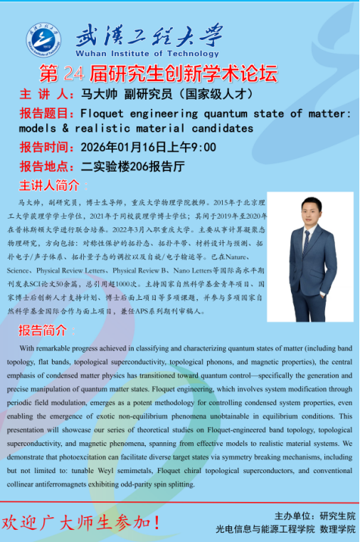 【研究生创新论坛】Floquet engineering quantum state of matter: models & realistic material candidates