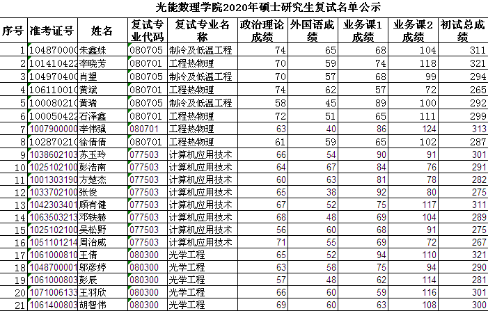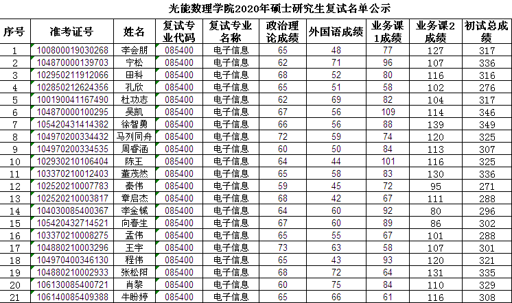 光能三亿体育官网2020年硕士研究生复试名单公示(第二批)