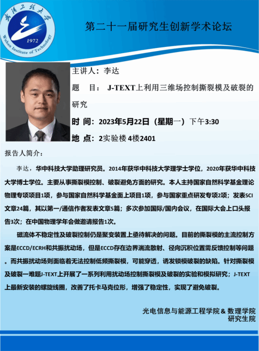 【研究生创新论坛】J-TEXT上利用三维场控制撕裂模及破裂的研究