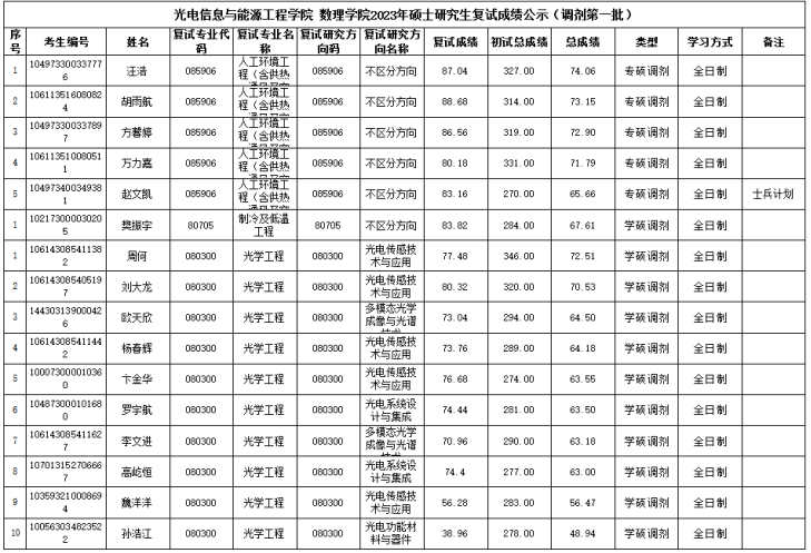 三亿体育 三亿体育官网2023年硕士研究生复试成绩公示(调剂第一批)