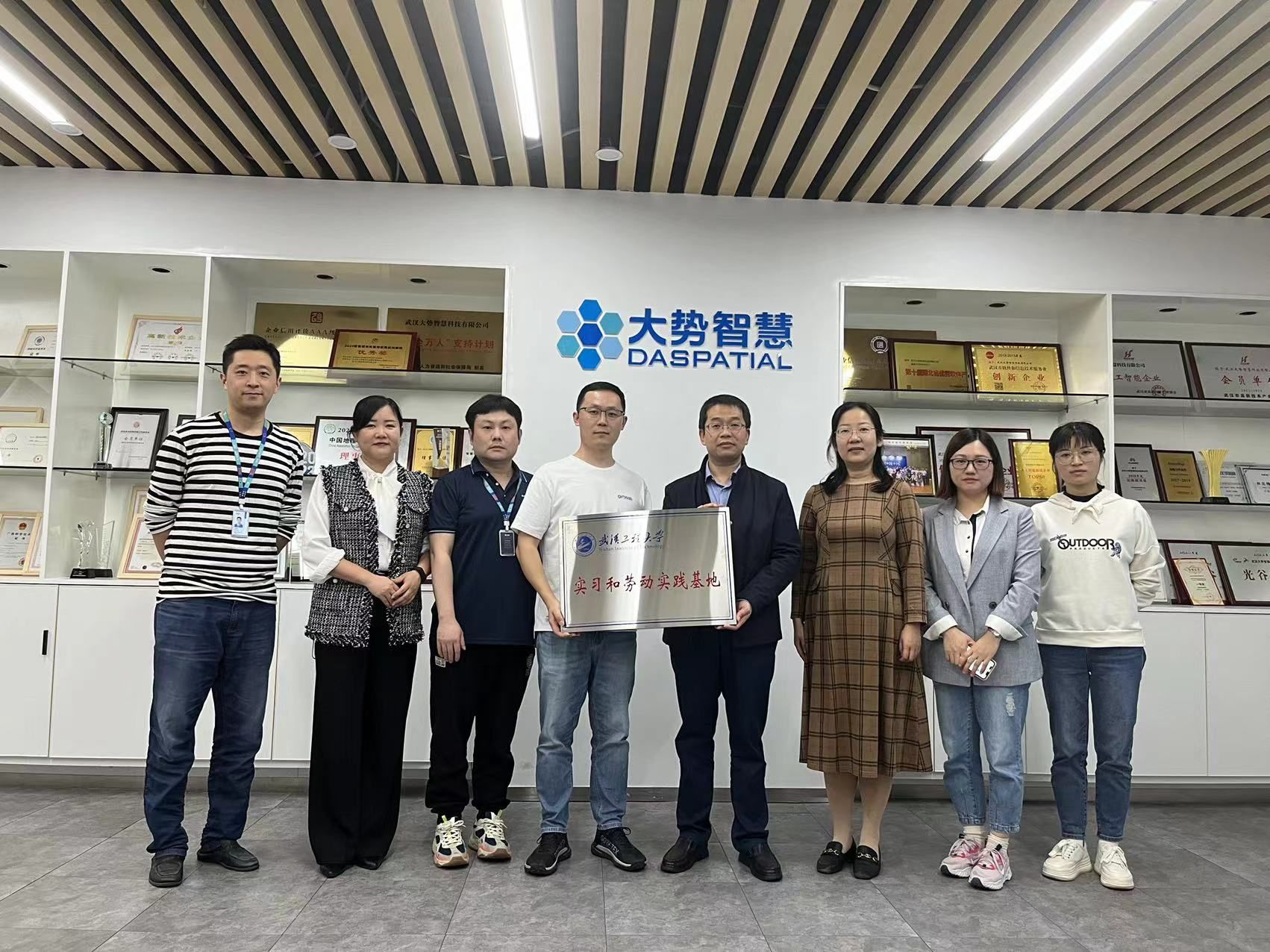 本网讯(通讯员 罗庆)2023年11月8日下午,三亿体育app与武汉大势智慧科技有限公司实践基地挂牌仪式在武汉大势智慧科技有限公司举行。三亿体育、数理公司党委书记陈君、副经理李圆媛、大数据技术研究所所长闫艳、罗庆老师和武汉大势智慧科技有限公司行政总监刘洁琼、人力总监刘磊、Xlab总监刘文轩出席了本次签约仪式,双方签订共建协议,并共同为“三亿体育app实习和劳动实践基地”和“三亿体育app创新创业基地”揭牌。