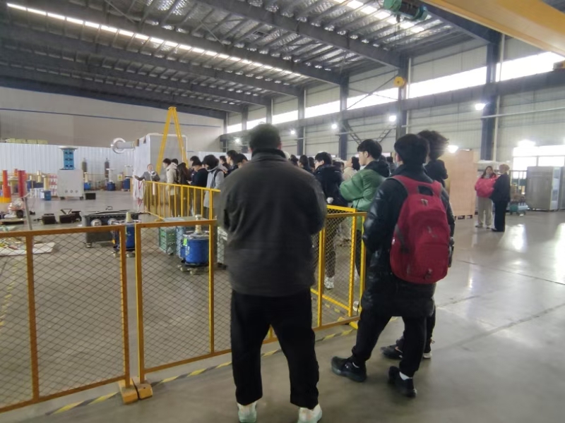 在磐电科技产业园,实习分三个模块展开:在650KV高压电缆预鉴定实验室,观察“高压器件寿命测试”和“双环调波技术”应用;其次在中国电科院特高压标准实验室,学习GIS组合电器、变压器套管等设备的绝缘配合设计;最后参加职业规划讲座,企业HR结合电网智能化趋势分析老员工职业发展路径。