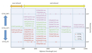 我们从理论上研究了从 14 种双折射晶体(CMTC、THI、LiIO3、AAS、HGS、CGA、TAS、AGS、AGSe、GaSe、LIS、LISe、LGS 和 LGSe)和 8 种周期极化晶体(LT、LN、KTP、KN、BaTiO3、MgBaF4、PMN-0.38PT 和 OP-ZnSe)种制备纯态单光子源的方法。 波长范围覆盖 1224nm 到 11650nm 。 我们计算了每种晶体的三种群速度匹配(GVM)条件、相位匹配条件、光谱纯度和HOM干涉。 这项研究有望为中红外波长范围的量子传感、量子成像和量子通信应用提供高质量的单光子源。