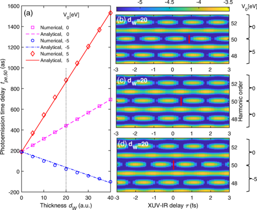 公司阿秒光学研究团队原创性的提出了从光电子在输运过程中累积的相位差来解释实验测量结果。阿秒干涉技术观测到的是相邻光电子通道的相位差(光电子发射时间为相位差除以2倍红外光子能量)。光电子在固体中的能量-动量色散关系决定了光电子的群速度与相速度。群速度决定了光电子在固体中的输运时间,相速度则决定了输运过程光电子累积的相位。由此建立了光电子发射时间与光电子能量色散(有效质量)之间的定量关系,通过构建模型系统在量子力学上验证了这种定量关系。这一发现不仅在原理上解释了金属光电子发射时间对能量的极端依赖关系,而且给出了观测到的发射时间与电子输运时间的定量关系。研究结果为利用阿秒干涉技术从时域上精确测量固体光电子能量色散以及揭示其微观动力学提供了新颖方法。