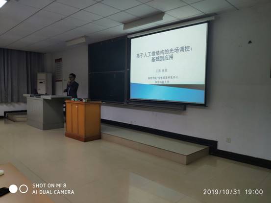 报告会中,王凯教授首先介绍了在亚波长尺度下实现光场的多维度任意调控的重要意义;其次,讨论了具有不同光学功能和特殊光学效应的微型光学器件在微纳光学与光子学研究和发展的前景;最后,解释了人工微结构的基本概念,以及其在微区实现对光场的的振幅、相位和偏振态等的重要应用。