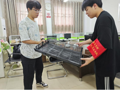 现场保护、作业准备、断开电源,拆开空调外壳,取出内部过滤网放入防尘袋,集中转运、清理浮灰,清洗过滤网、蒸发器、灌流风机风轮,将晾干的部件重新装回,恢复供电、运行调试,党员志愿者们动作娴熟,一气呵成,赢得了师生一致好评。