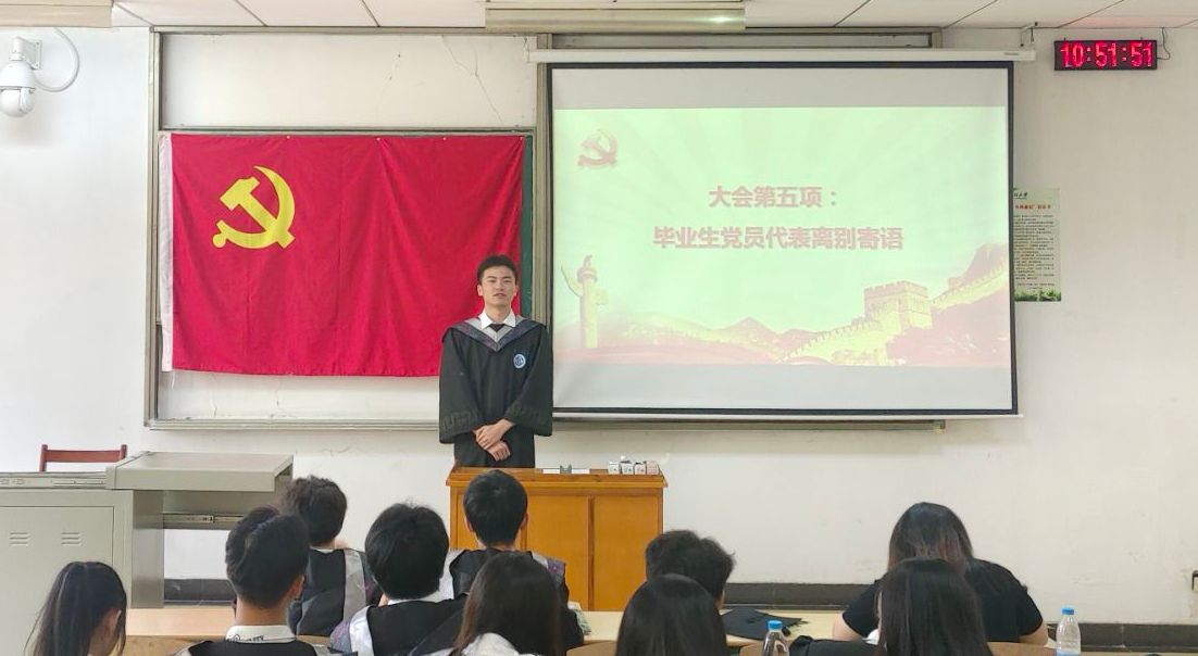 毕业生党员离别寄语,何家彬范启鹏等党员结合自身经历,与支部低年级党员充分交流,分享有关考研和求职就业等方面的经验,畅谈未来规划,并表达对党支部、学院、母校的感恩之情。