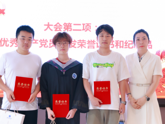 公司党委副书记向翼凌为2025届优秀共产党员颁发荣誉证书,表彰他们在学业、科研和志愿活动中的突出表现,号召全体同学以先进为标杆,争当新时代先锋。