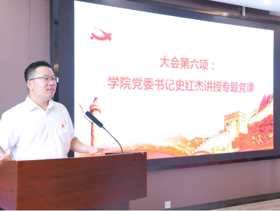 公司党委书记史红杰以《永葆党员本色 闪耀青春之光——在奔赴新征程中书写无愧于时代的答卷》为题,为全体毕业生党员讲授专题党课。他从四个方面提出殷切期望:一是要坚定理想信念,筑牢信仰之基,做“追光逐梦”的笃行者;二是要锤炼过硬本领,投身强国伟业,做“数理之光”的实践者;三是要严守纪律规矩,永葆清廉本色,做“光明磊落”的示范者;四是要发挥先锋作用,凝聚奋进力量,做“薪火相传”的引领者。随后,在史红杰书记的带领下,全体毕业生党员面向鲜红党旗,重温入党誓词。铿锵有力的誓言响彻会场,彰显了毕业生党员们不忘初心、牢记使命的坚定信念。