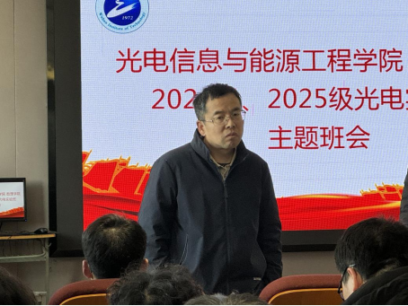立足时代需求,锚定成长航向。 会上,陈相柏经理结合国家战略发展与科技前沿趋势,从办学优势与培养目标、学情分析与成绩解读、发展规划与目标确立三个维度与同学们进行了深入交流。他指出,光电实验班作为学院深化公司产品改革、探索拔尖创新人才培养的重要阵地,承担着为光电信息产业和区域经济发展输送高素质人才的使命。他通过详实的数据分析帮助同学们客观审视学业状况,引导大家将个人成长融入行业发展大局,在明确方向中坚定信心,在科学规划中积蓄力量,努力成长为具备扎实专业基础、前沿视野与实践能力的应用型创新型人才。