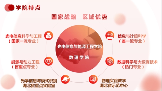 公司现有全日制本、硕、博员工共1800余人,已形成优势明显、特色鲜明、理工融合、结构合理的学科体系。学院下设光电信息科学与工程、能源与动力工程、信息与计算科学、数据科学与大数据技术4个本科专业;其中,光电信息科学与工程专业为国家一流本科专业建设点、湖北省战略性新兴(支柱)产业人才培养计划项目专业,信息与计算科学专业为湖北省一流本科专业建设点。